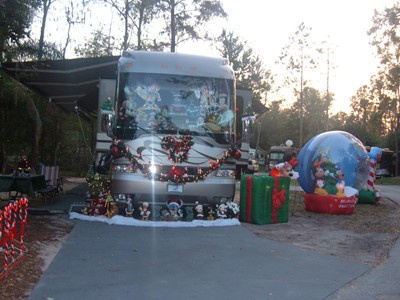 After the safari we went back to the RV for a late lunch – early dinner. One of the wonderful things that we got to do this year was hop from park to park because we have annual passes this year. Mom and I decided after dinner to rent a golf cart for a couple of hours so we took a tour of all of the decorated RVs. Some of these people spend their whole winters here and keep decorations in storage units nearby. Here is one of my favorites.